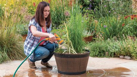 I’ve made candle holders from antique tea cups found at thrift shops and from inverted garden cloches hung with twine from tree branches. My favorites, however, are my punched-tin lanterns. They add a folk-art touch to the garden and are fun and easy to create. Most of the materials can be found in the recycling bin and in a reasonably well-stocked tool shed. The designs I use are often inspired by the plants and trees around my house, and they reflect the overall feeling of my garden—casual and personal.